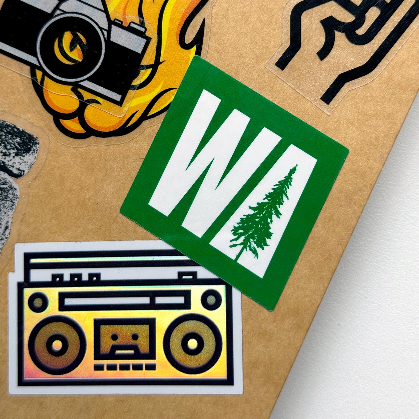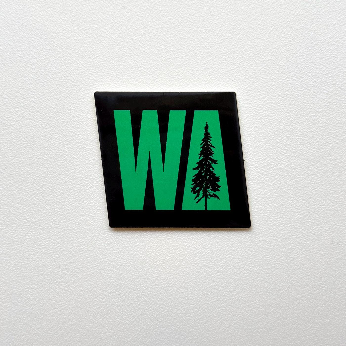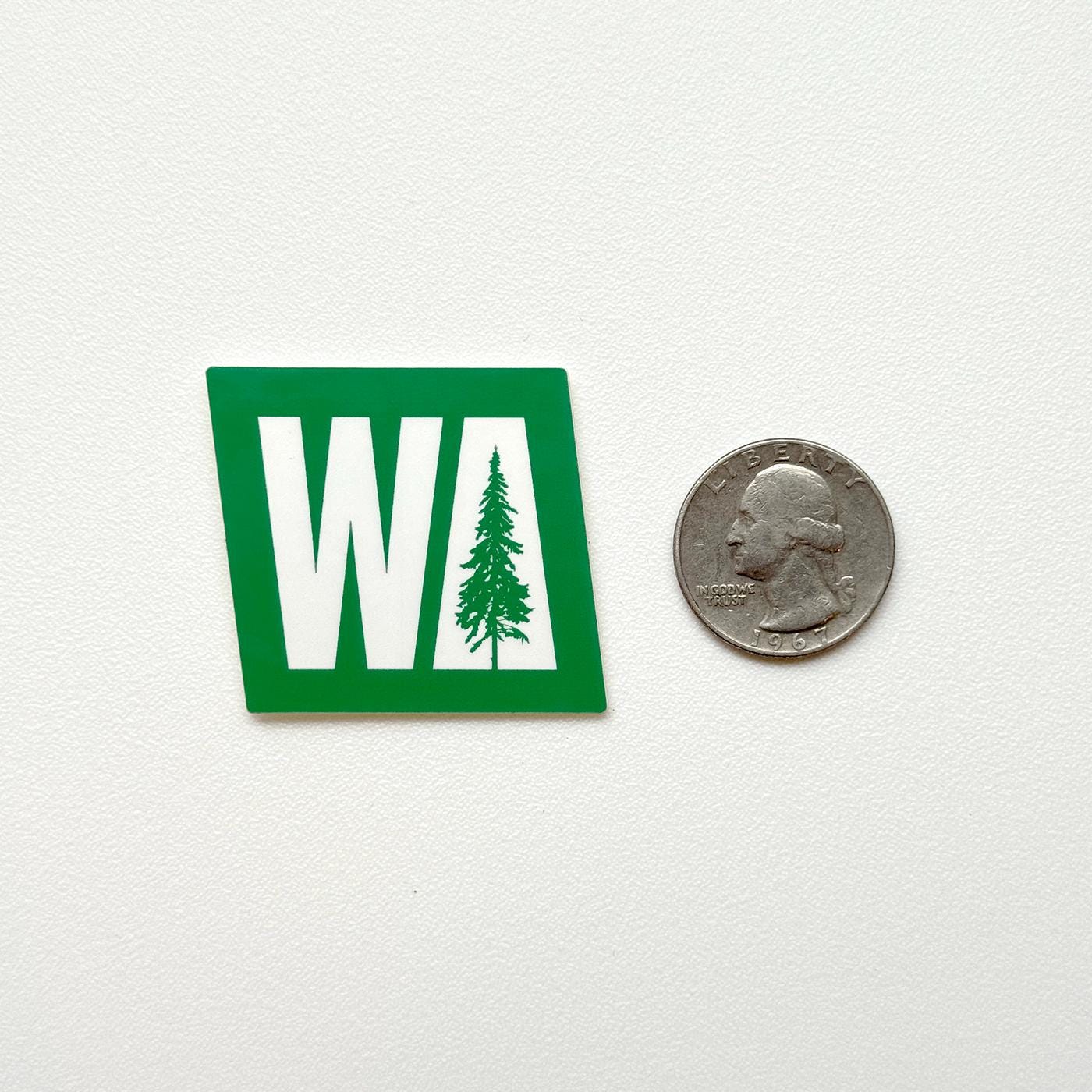 WA. In green and white or black and green. 1.75" wide by 1.5" tall.