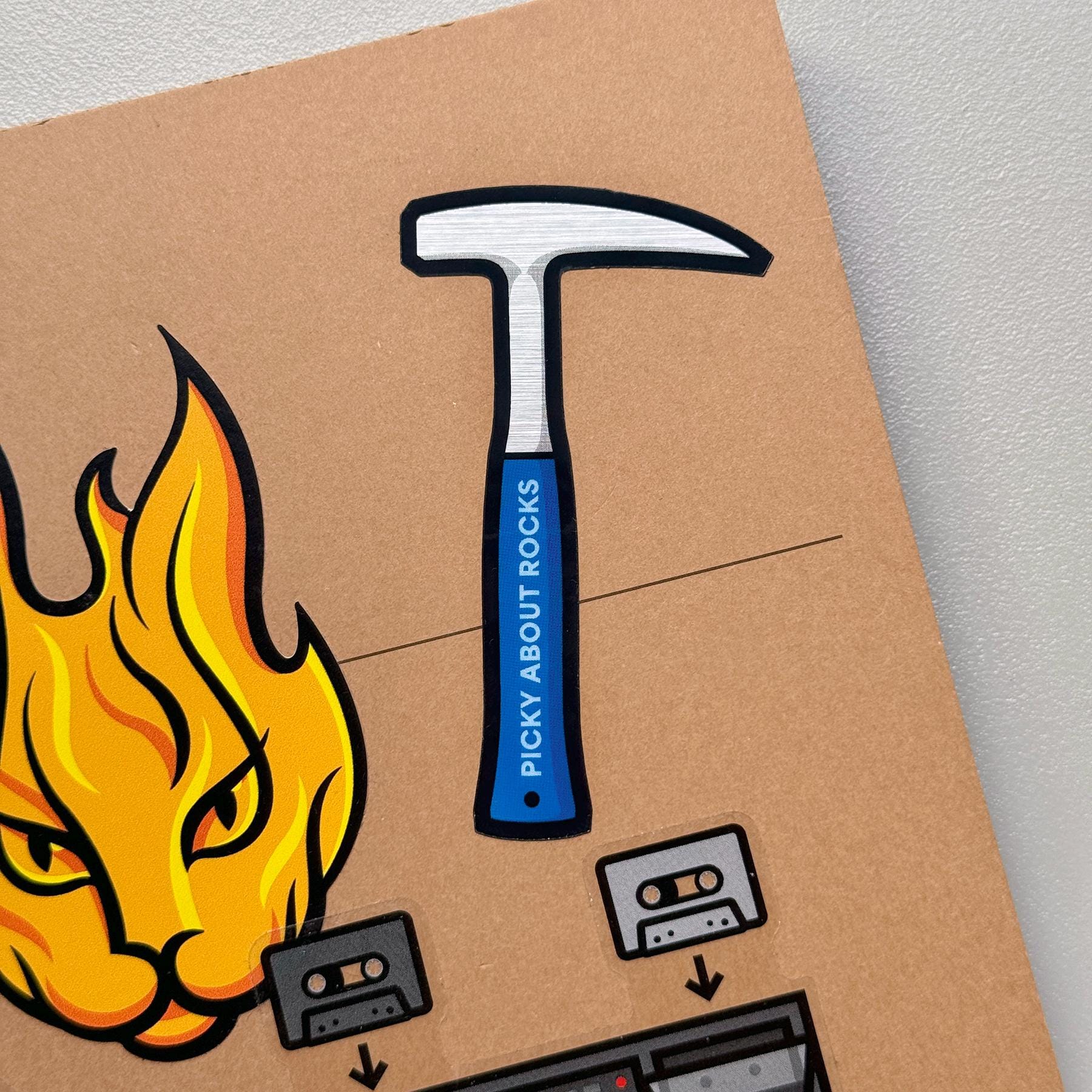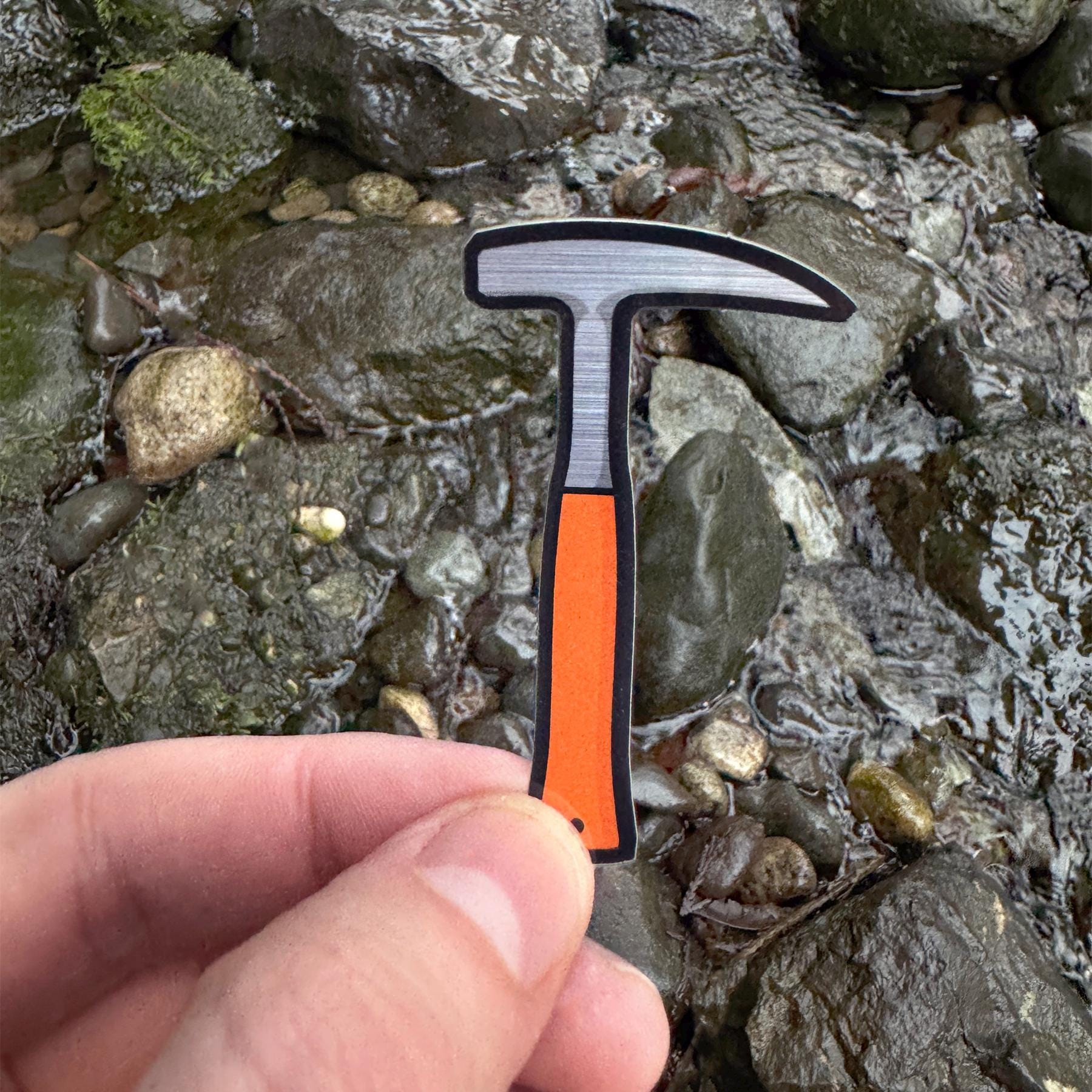 Vinyl sticker for people who dig rocks. Brushed metallic foil makes them look as sharp as the real thing. In two sizes: 3" tall with "Picky About Rocks" on the blue handle or 2.5" tall with a plain orange handle.
