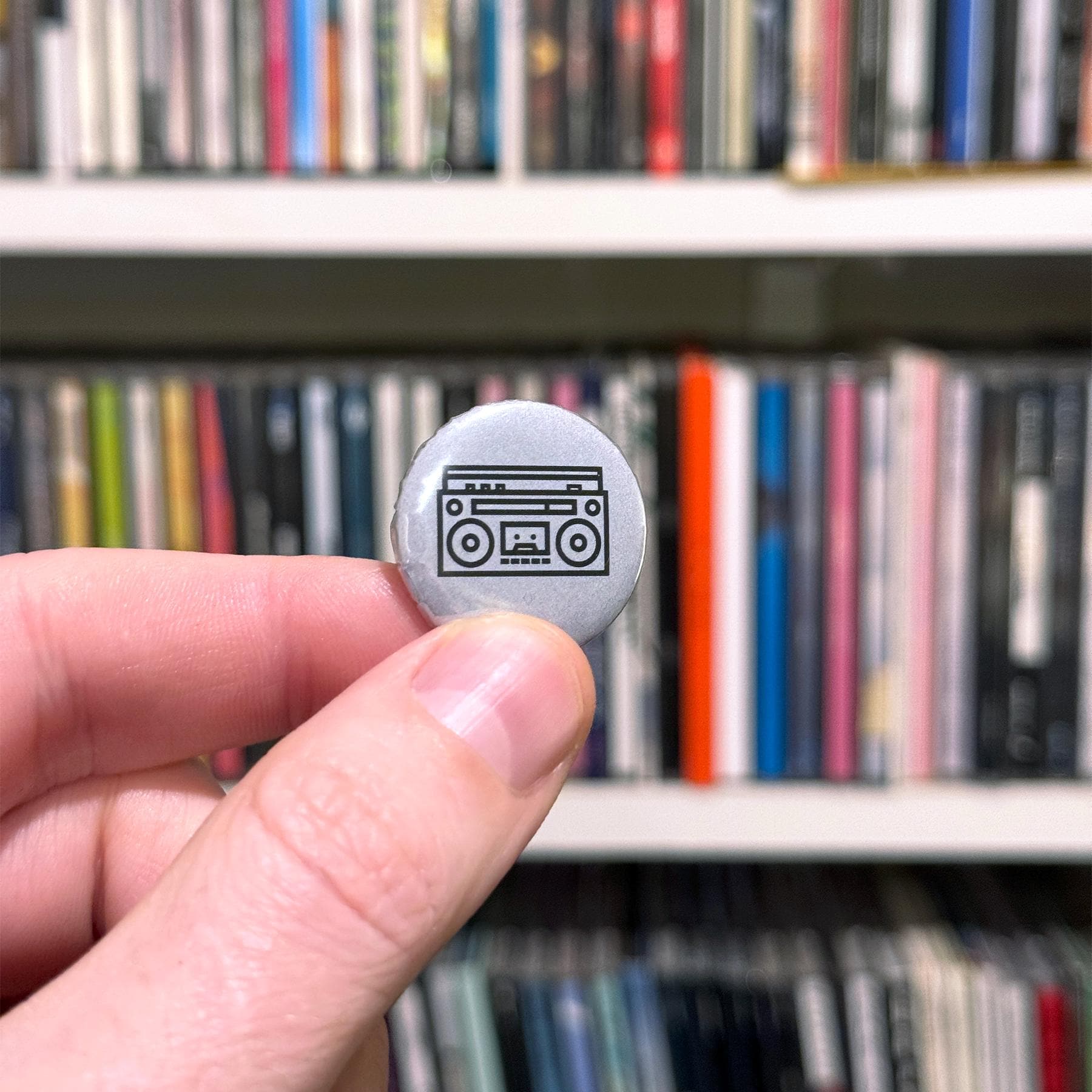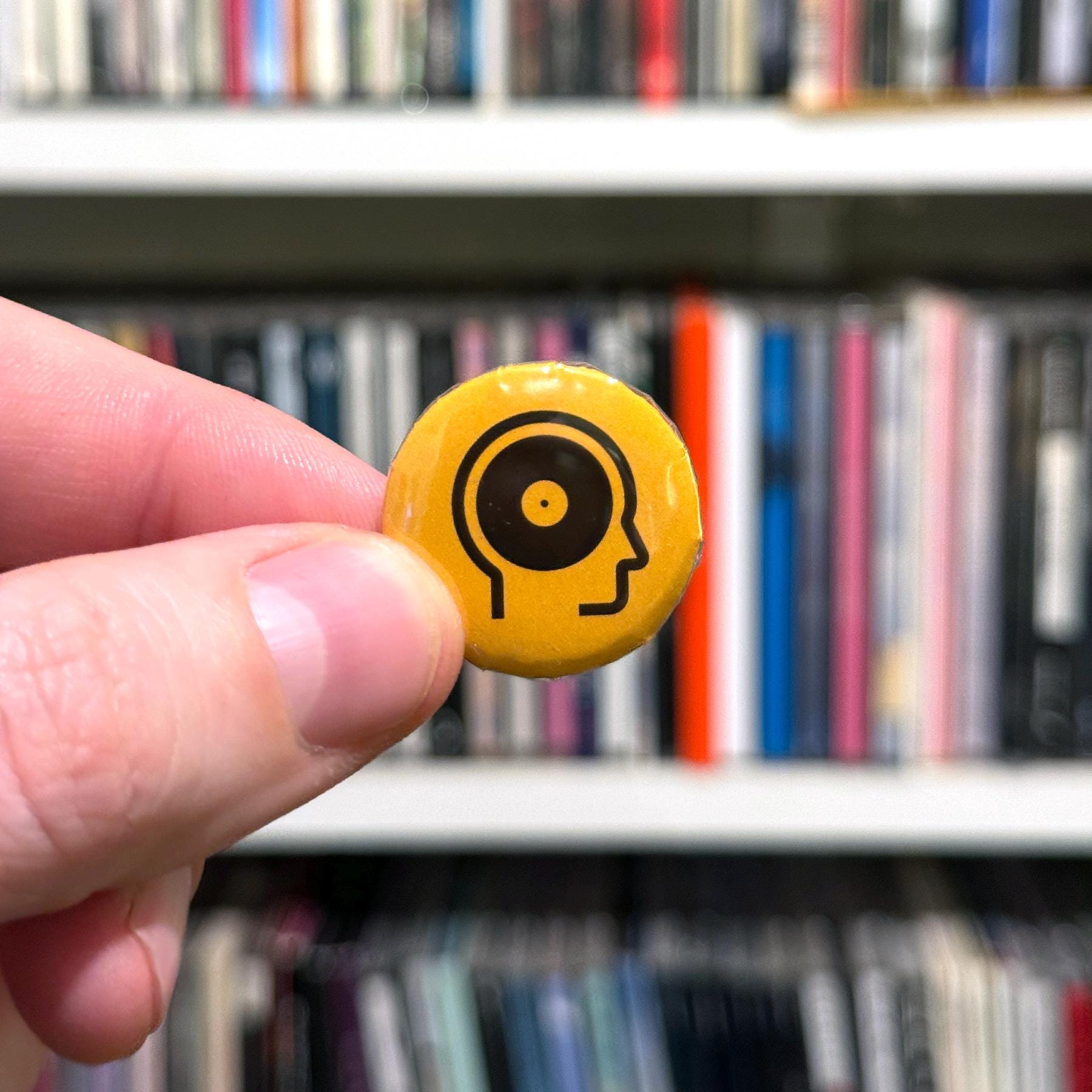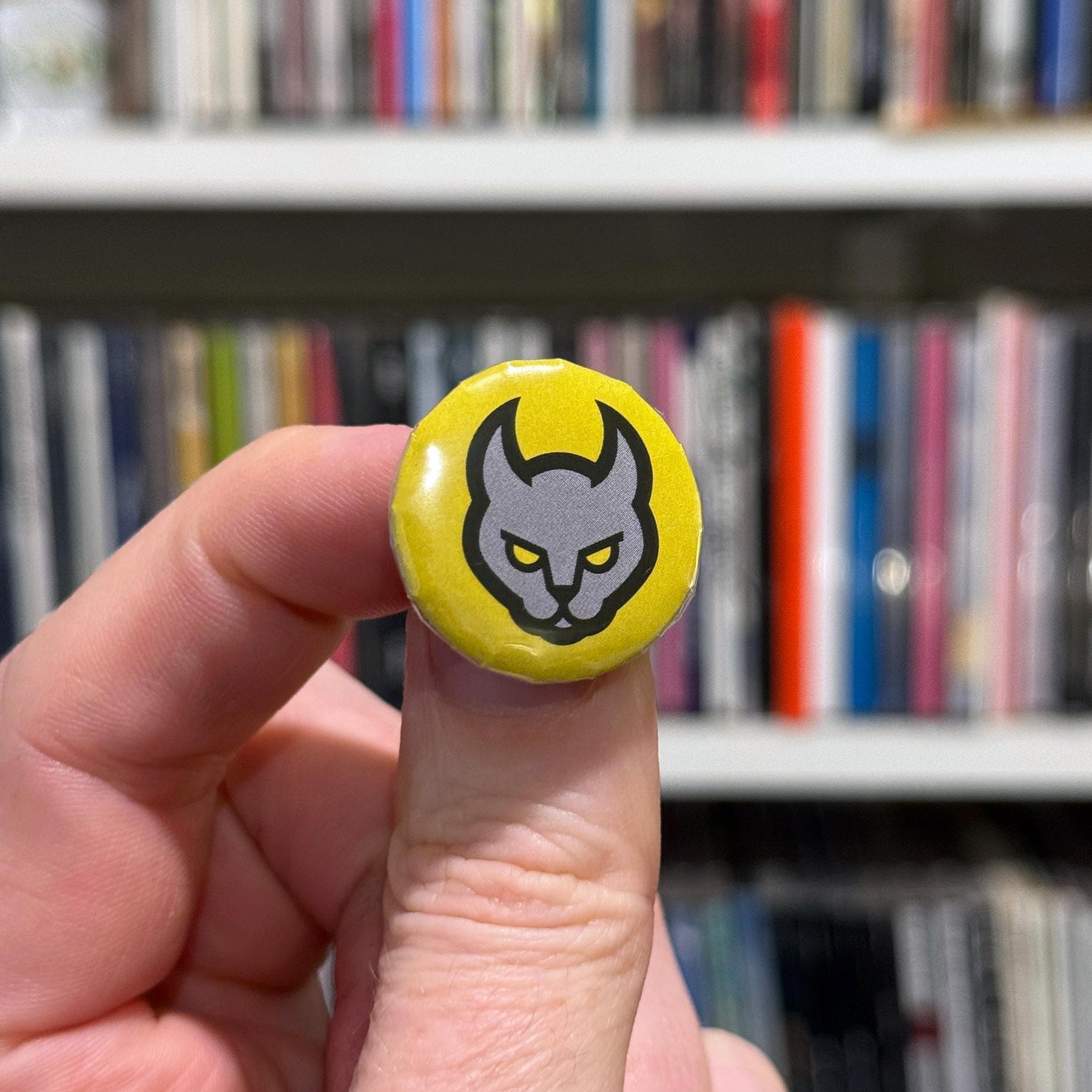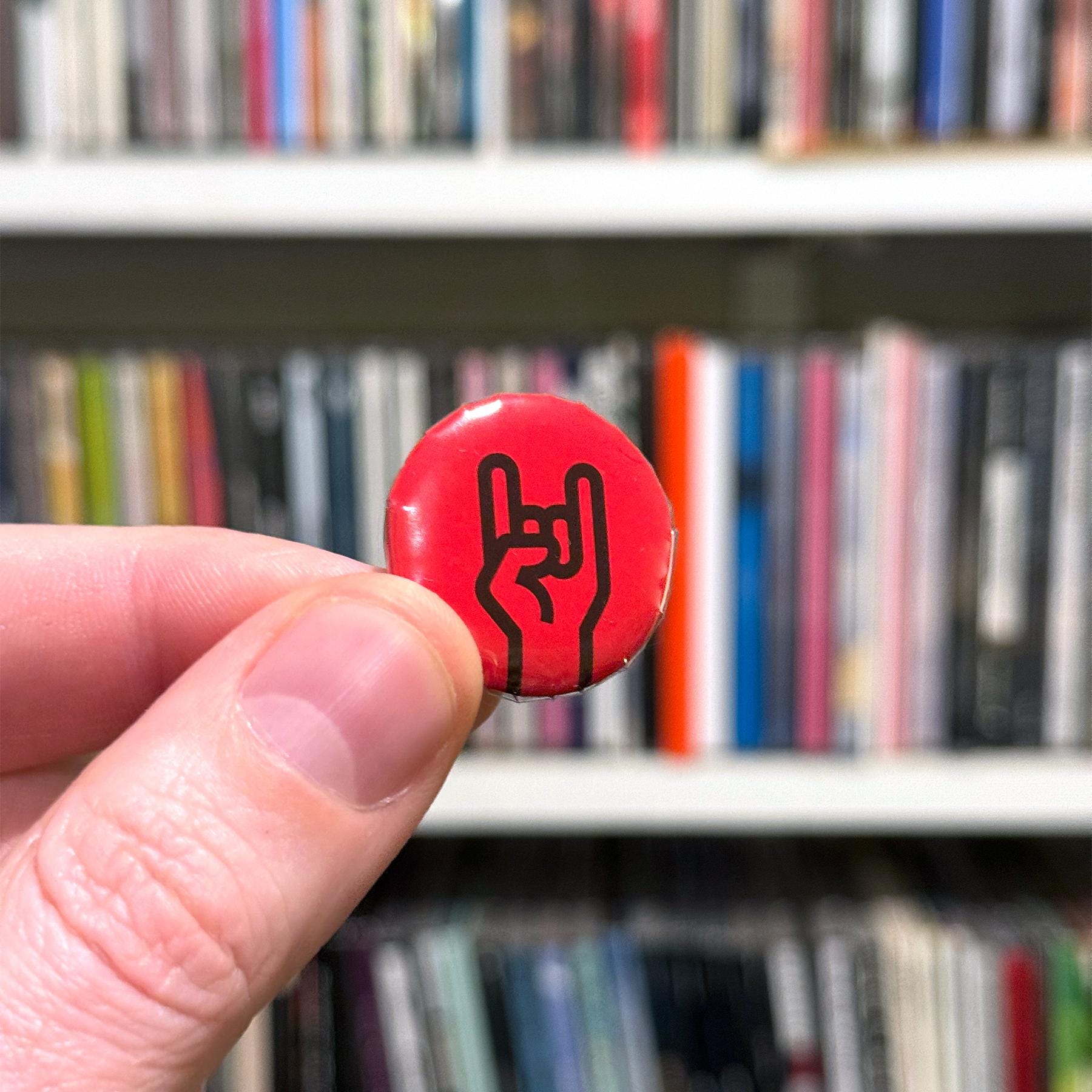It turns out, all my sticker graphics make great buttons, too. These are real metal-backed pin buttons made right here by me and a button press.