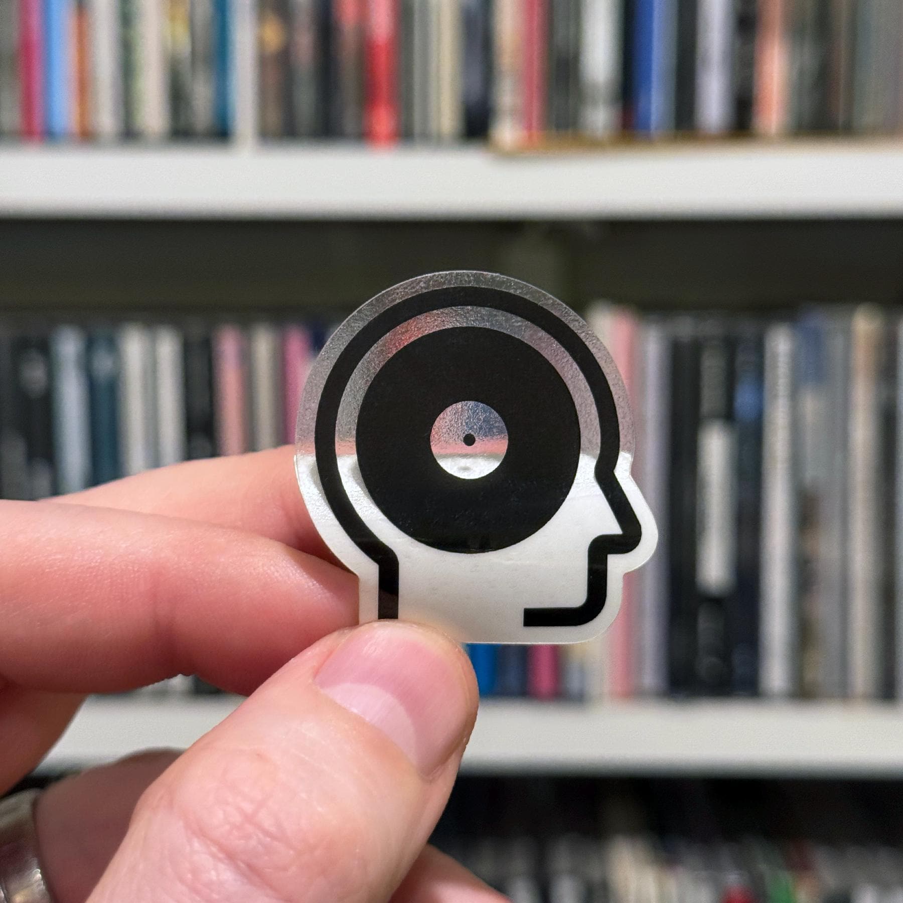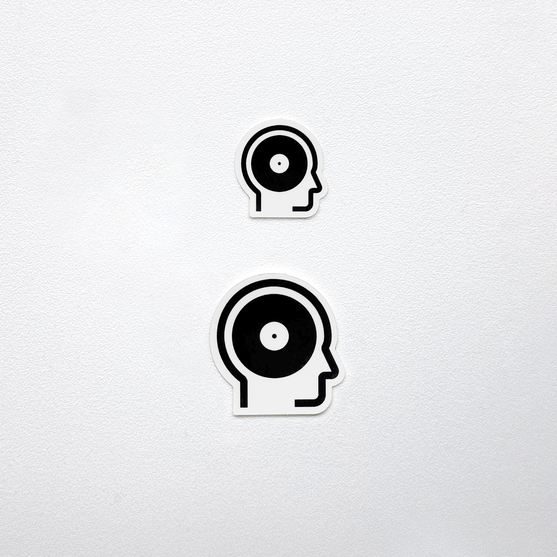 Thinking about records. Opaque black symbol on a clear diecut sticker. Two sizes: 1" and 1.5".