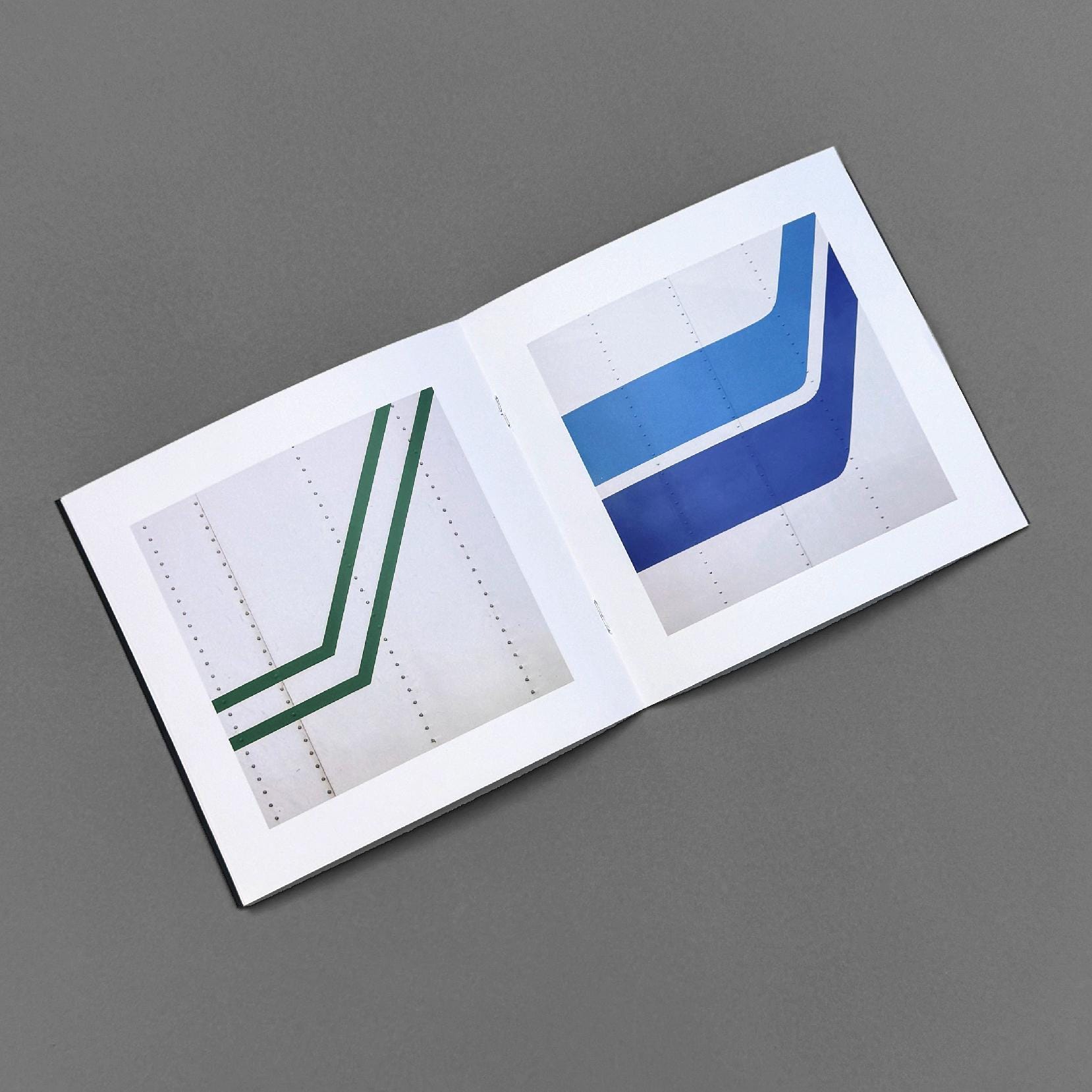 A zine reproducing a series of 28 abstract photographs of semi truck graphics. The photographs were taken in 2010 on a Canon PowerShot DS110 on a round-trip drive from Chicago to San Francisco. This zine is professionally printed, 6 in. × 6 in. (size when closed), saddle stitched, 4-color printing, 32 pages incl. cover, 80lb Satin Text, 100lb Satin Cove with Matte Lamination.